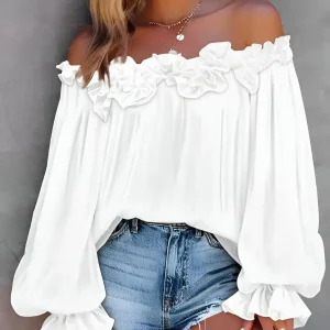 Haut à manches lanterne avec patch en dentelle et détail noué