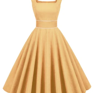 Tonval col carré jaune velours côtelé femmes taille haute Vintage années 50