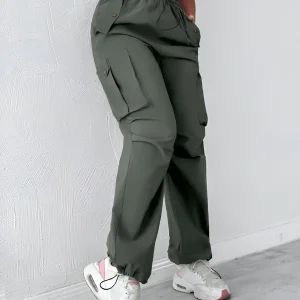 Pantalon cargo court avec poches latérales et cordon de serrage à la taille