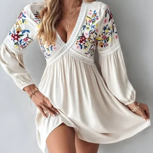 Robe décontractée à petites fleurs et patch en dentelle brodée