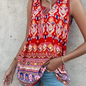 Débardeur noué à imprimé cachemire et petites fleurs colorblock