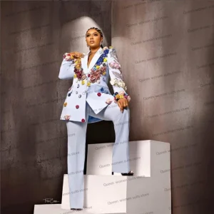 Tuxedos de mariage pour femmes, ensemble 2 pièces, Blazer + pantalon, perles de fleurs 3D en cristal