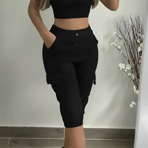 Pantalon cargo court avec poches latérales et cordon de serrage à la taille