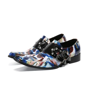 Chaussures habillées avec boucle en cuir noir métal bout pointu Oxford