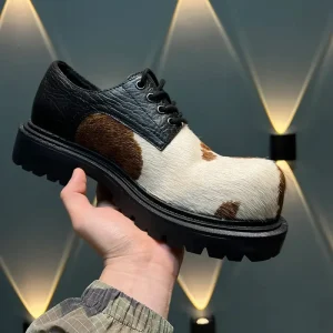 Chaussures décontractées en cuir à lacets et talon épais unisexe, modèle Horsehair Debi