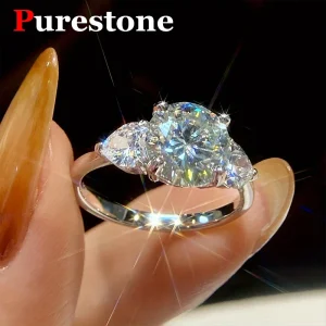 Bague de luxe en argent sterling 925 avec diamants en forme de cœur et moissanite véritable de 3 carats pour femme