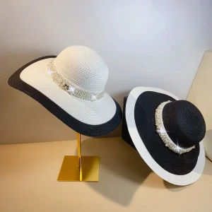 Chapeau de paille d’été femme petit parfumé perle de vent couleur assortie grand avant-toit