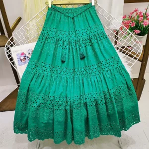 Jupe longue en coton brodée ajourée pour femme, jupe trapèze d’été style bohème