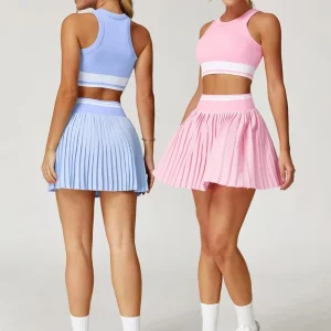 Survêtement de sport sans manches pour femme, ensemble 2 pièces, gilet push-up, yoga, jupe plissée, antireflet
