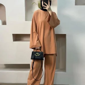 Ensemble 2 pièces pour femme musulmane de l’Aïd, chemisier, robe, pantalon large