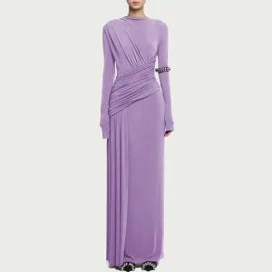 Robe asymétrique Plissée Élégante Couleur Unie Manches Longues Taille Haute Minceur