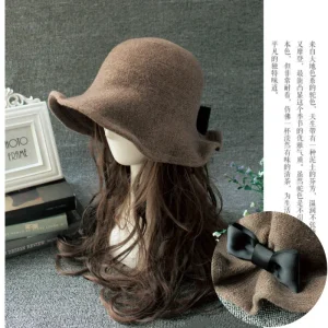Chapeau seau en feutre de laine pour femme, style vintage, cloche, Fedora