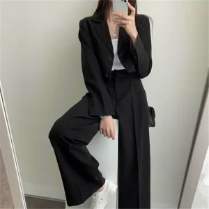 Ensemble deux pièces blazer court et pantalon pour femme, veste de costume boutonnée à la mode coréenne