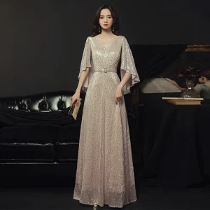 Robes de bal col en v robes longueur au sol femme soirée robe de bal trapèze à paillettes