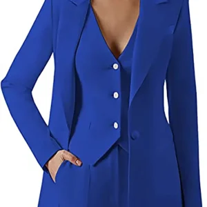 LISA Ensemble de costume 3 pièces grande taille pour femme, blazer à revers, veste d’affaires + gilet + pantalon