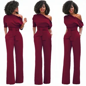 Combinaison élégante asymétrique épaule dénudée pour femmes, barboteuse longue
