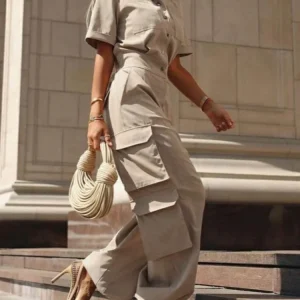 Combinaison cargo Beautyblue pour femme, tenue d’été décontractée, poches boutonnées, élégeante