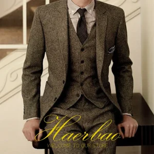 Costume 3 pièces de haute qualité, col en V, blazer pour homme