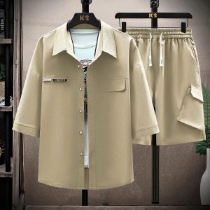 IAN Chemises + shorts été 100% coton lin Sportswear Ensembles décontractés
