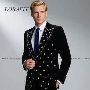 Costume de mariage en velours pour homme, personnalisé, haut de gamme, avec perles et diamants