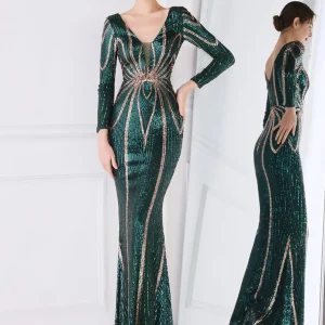 Robes de soirée à manches longues sexy pour femmes de luxe élégante robe à paillettes maxi vintage