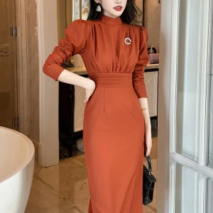 Robes professionnelles pour femmes, rétro élégantes, manches à bulles, plissées, taille haute