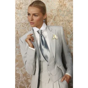 Costume 3 pièces gris uni pour femme avec revers, veste, gilet et pantalon