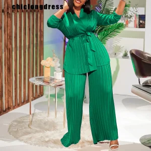 Ensemble élégant OL à lacets chemise large jambe pantalon plissé