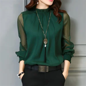 Chemisier élégant manches transparentes femme