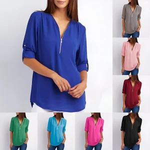 Chemisier Femme Ample Col V Manches 3/4