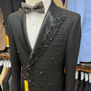 Costumes élégants à double boutonnage pour hommes, blazers de bal perlés, ensemble 2 pièces personnalisé
