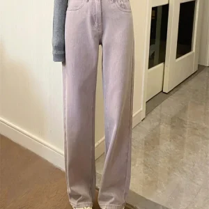 Jean large violet clair pour femme, en denim ample et droit, taille haute, style coréen, chic, printemps automne