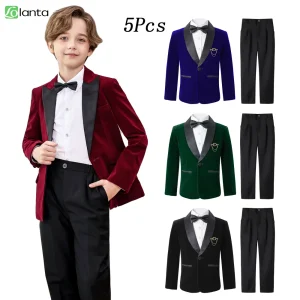 Ensemble de 5 costumes de Noël en velours pour garçons de 3 à 12 ans
