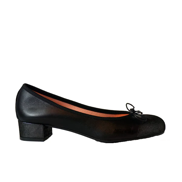 Les ballerines sont de retours à l’approche des beaux jours, et cette saison chez Ann Tuil on a voulu vous satisfaire comme il se doit avec de multiples matières et couleurs comme cette ballerine Ann Tuil Cora-Monica en velours irisé/cuir noir/canon de fusil qui s’habille aux tendances de l’été.