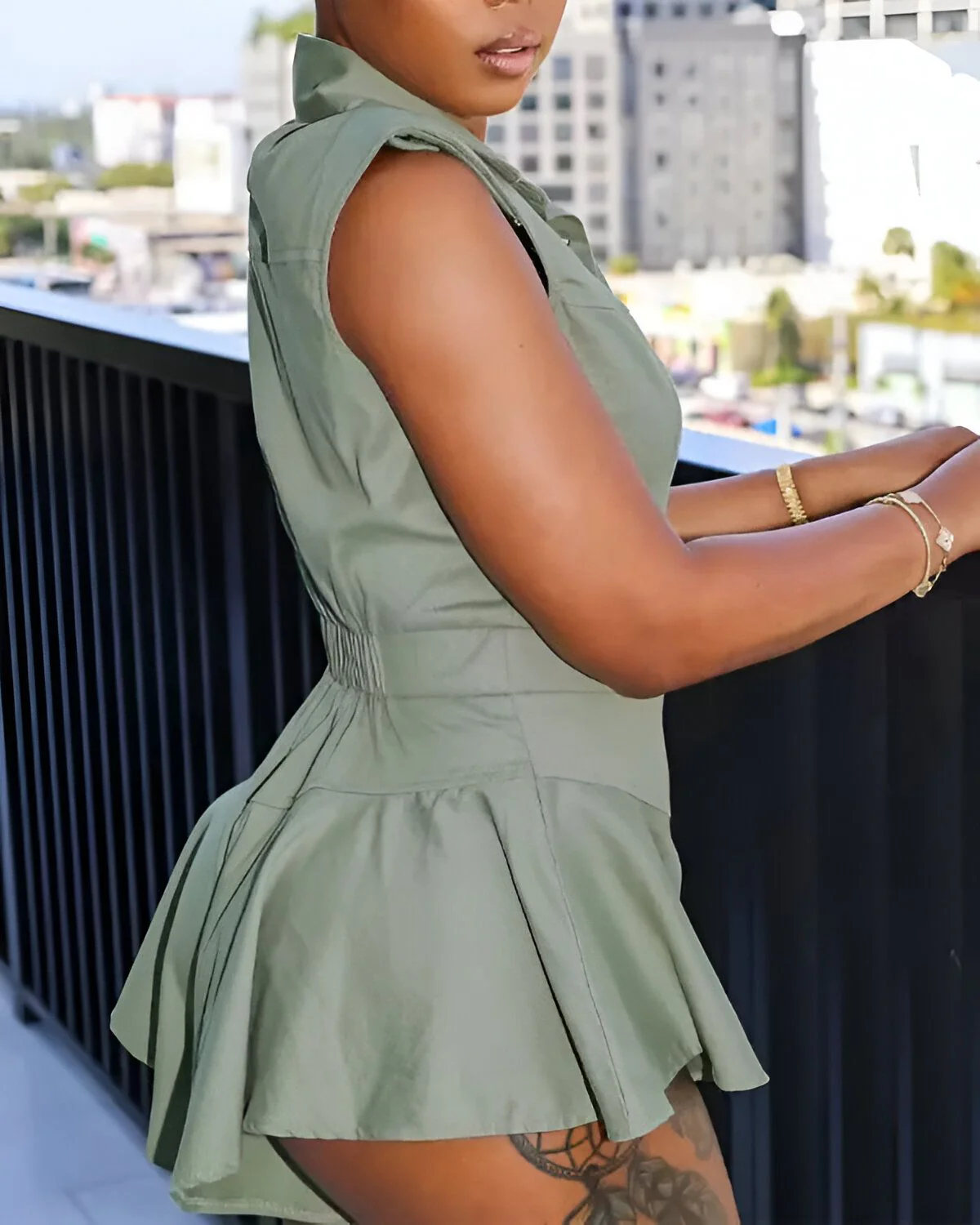 La barboteuse boutonnée sans manches à ourlet volanté incarne l’élégance décontractée avec une touche de charme intemporel. Confectionnée avec un souci du détail exquis, elle est conçue en 100 % polyester, garantissant confort et durabilité. Son col rabattu ajoute une note sophistiquée, tandis que son ourlet volanté apporte une touche de féminité irrésistible. Parfaite en toute occasion, cette barboteuse offre une coupe régulière et une longueur flatteuse au-dessus du genou. Son design sans manches permet une liberté de mouvement totale, tandis que son motif uni et sa décoration de boutons et de volants ajoutent une subtile touche de style.
