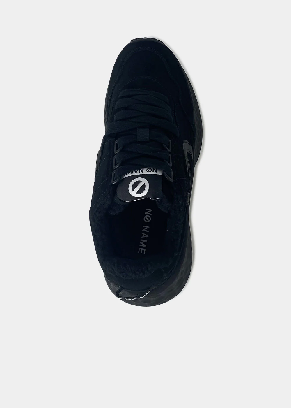 Dans cette version, la CARTER JOGGER joue la carte du full black. Entièrement doublée d’une maille bouclette façon shearling, cette jogger réconfortante est un véritable cocon pour les pieds. Les logos noirs et l’épaisse semelle rehaussent l’allure d’un cran. Fidèle aux codes de NO NAME, elle mêle audace et confort.