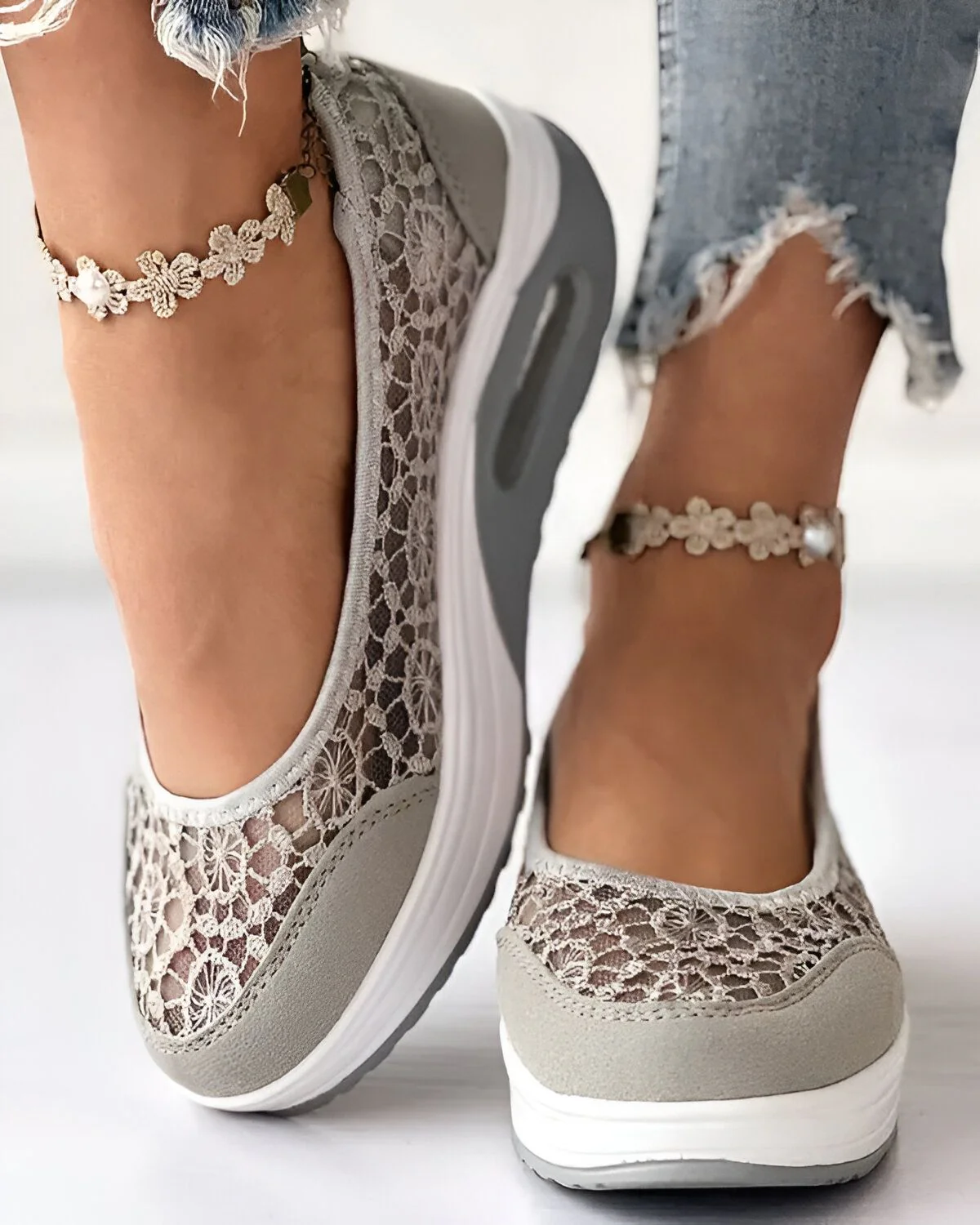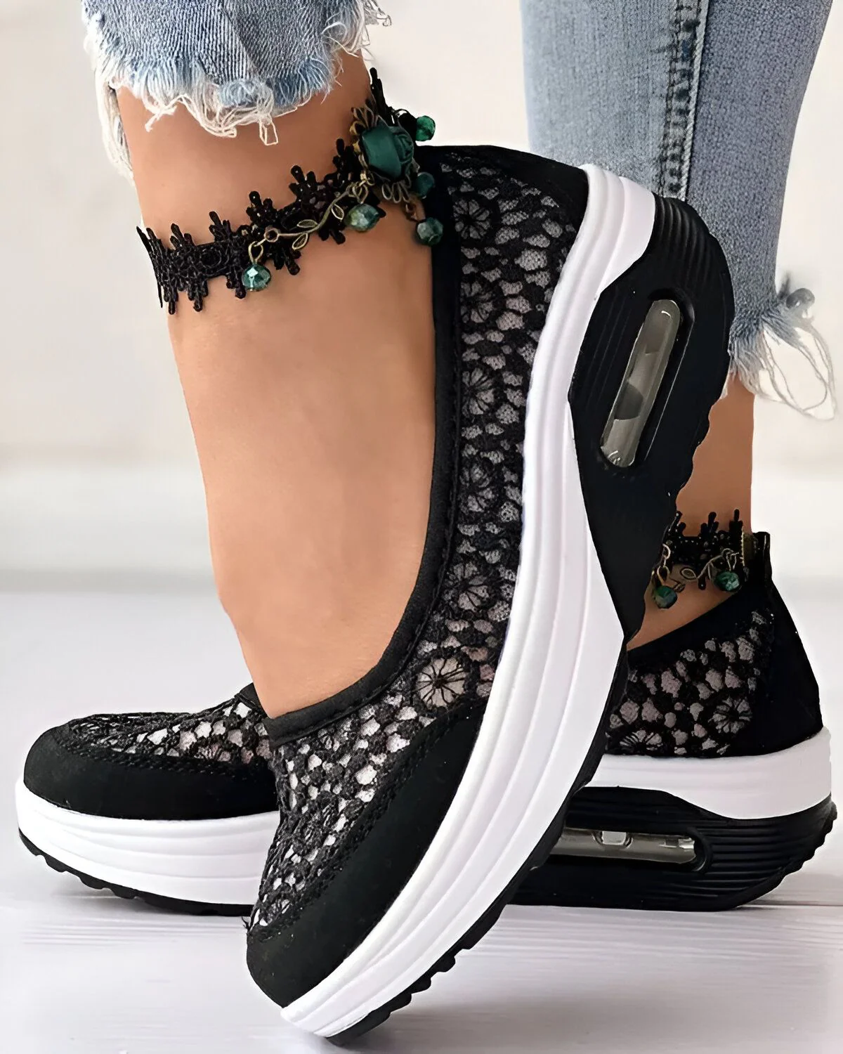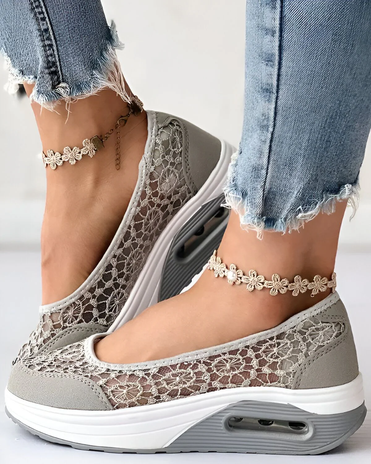 Nos baskets à enfiler en dentelle contrastante incarnent à la perfection l’alliance du style et du confort. Elles sont conçues pour les esprits libres et les âmes aventureuses, offrant un mélange harmonieux de décontraction et d’élégance. Que vous arpentez les rues animées de la ville ou flânez dans un parc verdoyant, ces baskets seront votre compagnon idéal.