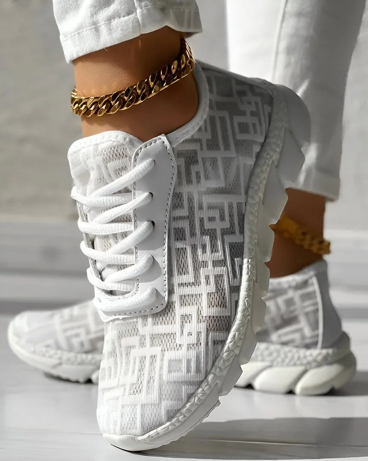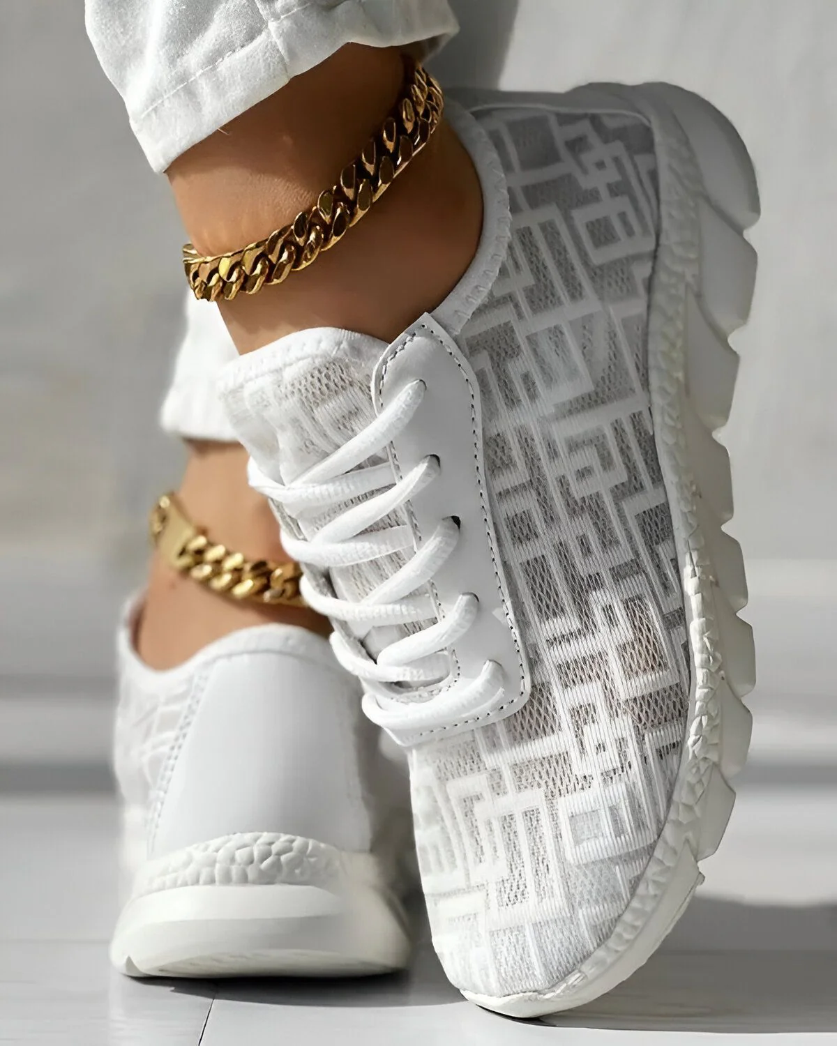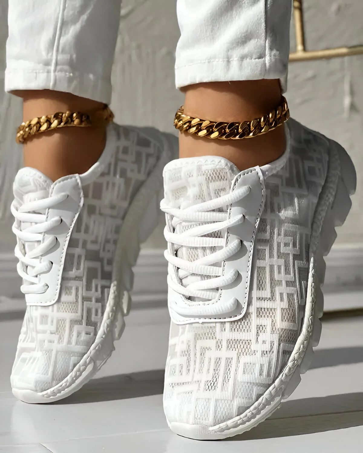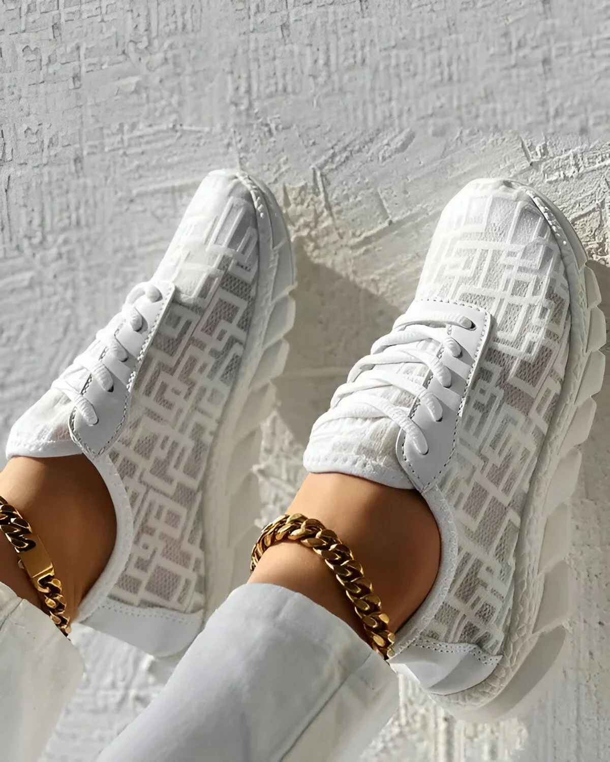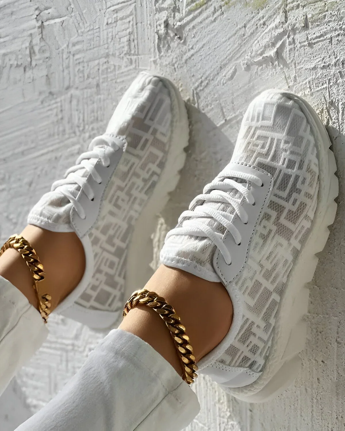 Découvrez nos baskets à lacets respirantes à motif géométrique, l’alliance parfaite du style chic et du confort. Conçues pour les citadins en quête d’expression personnelle, elles incarnent l’harmonie entre la mode et la fonctionnalité. Leur motif distinctif apporte une touche de modernité à votre tenue quotidienne, pour un style chic au quotidien. Confortables et respirantes, ces baskets assurent une sensation de fraîcheur et un bien-être durable à vos pieds, où que vous alliez.