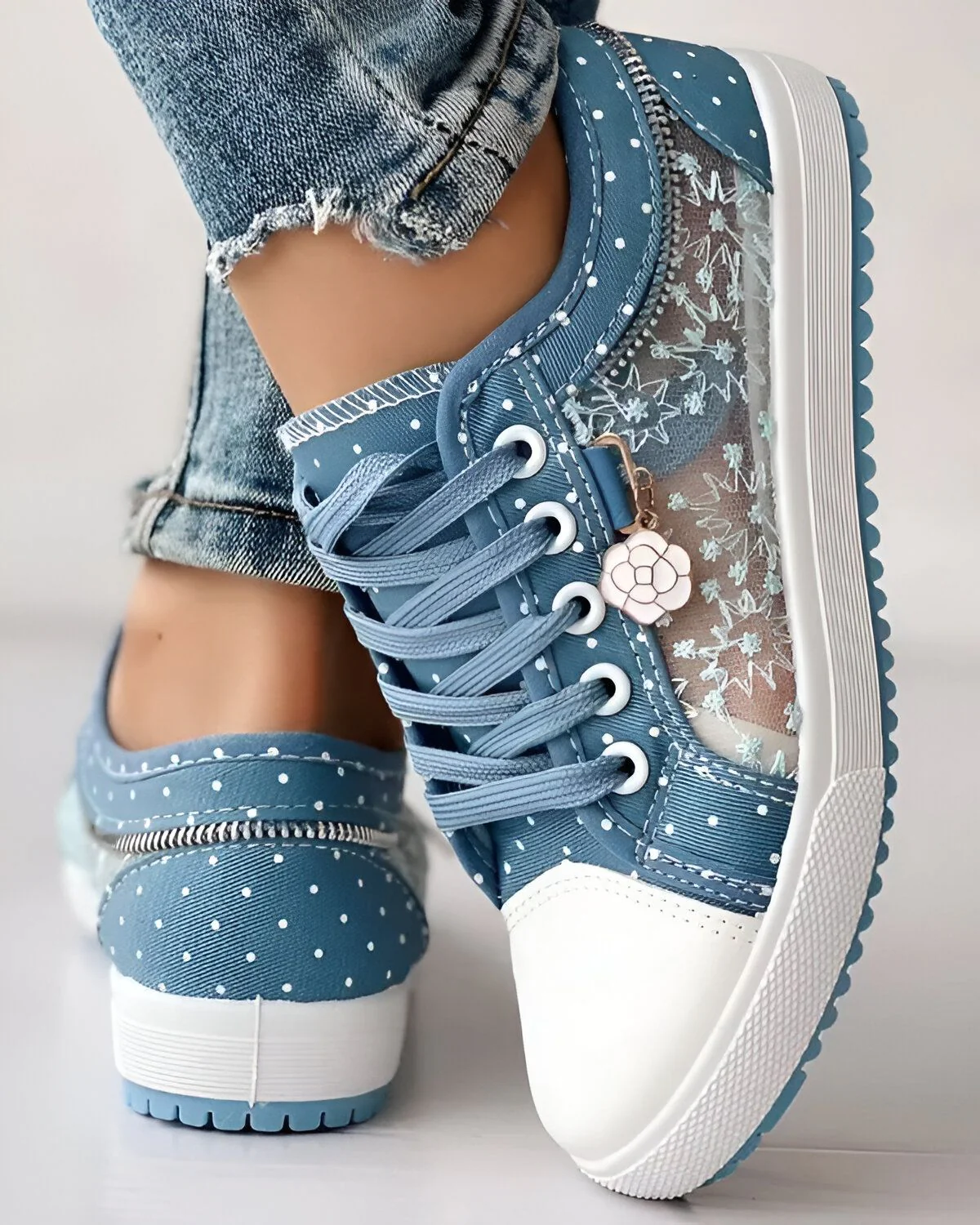 Succombez au charme unique de ces baskets à motif floral brodé à pois. Elles insuffleront une touche d’originalité à votre garde-robe quotidienne en alliant à la perfection mode et confort. Confectionnées en polyester et en mèche de haute qualité, elles vous garantissent une respirabilité exceptionnelle tout au long de la journée.