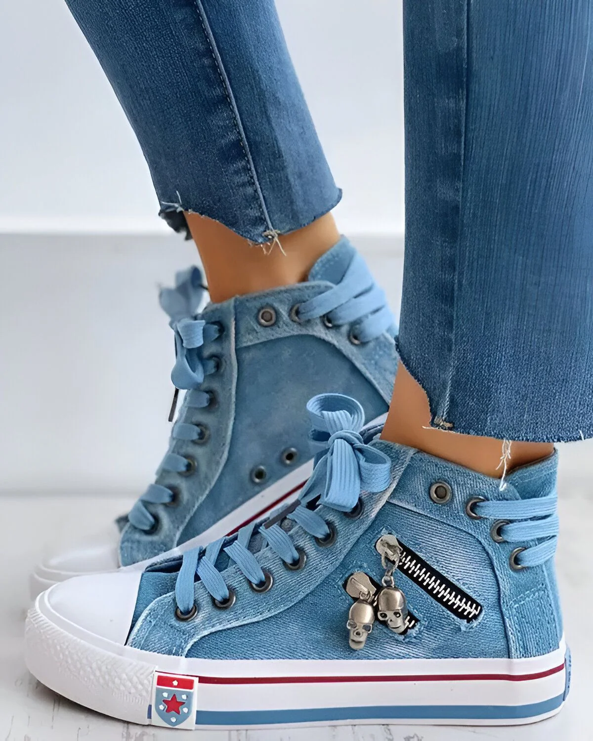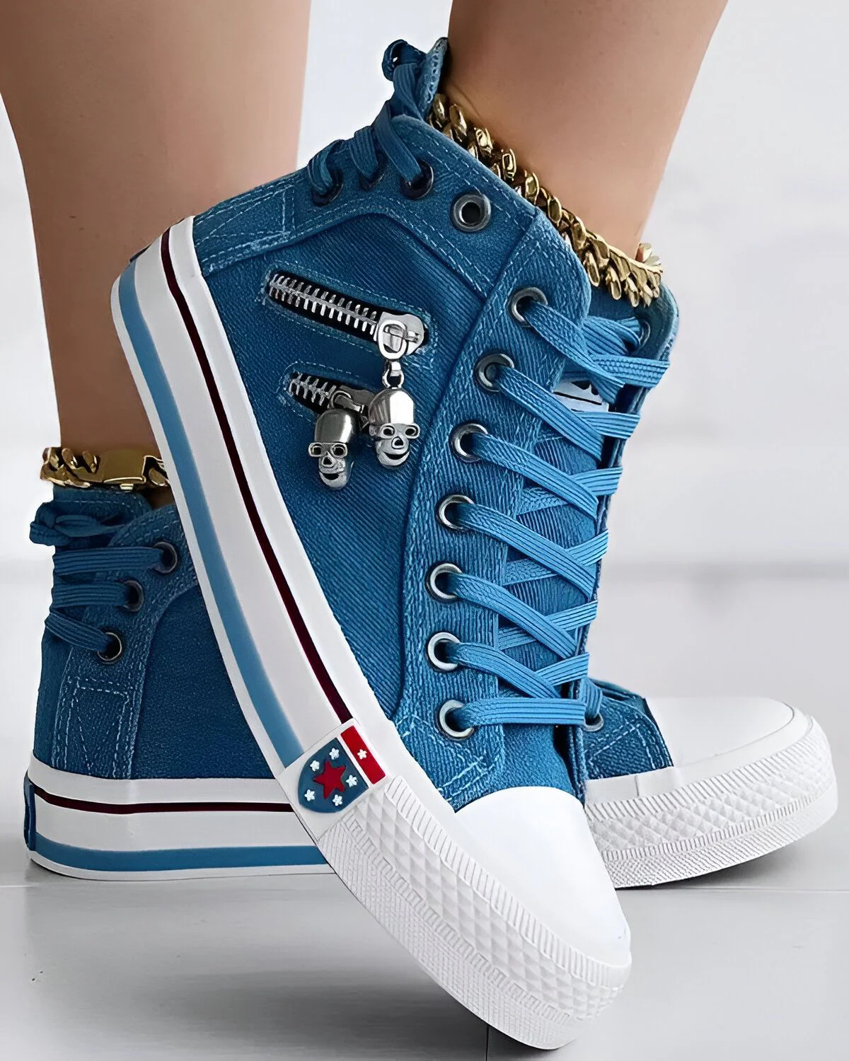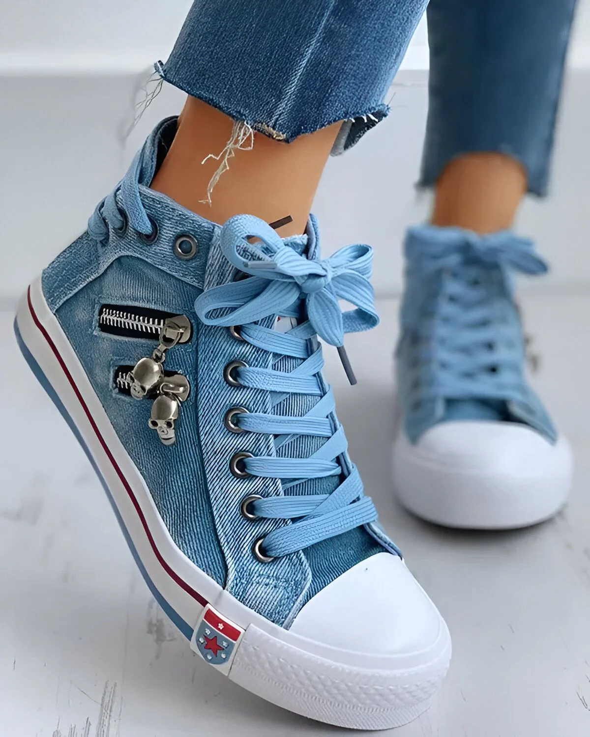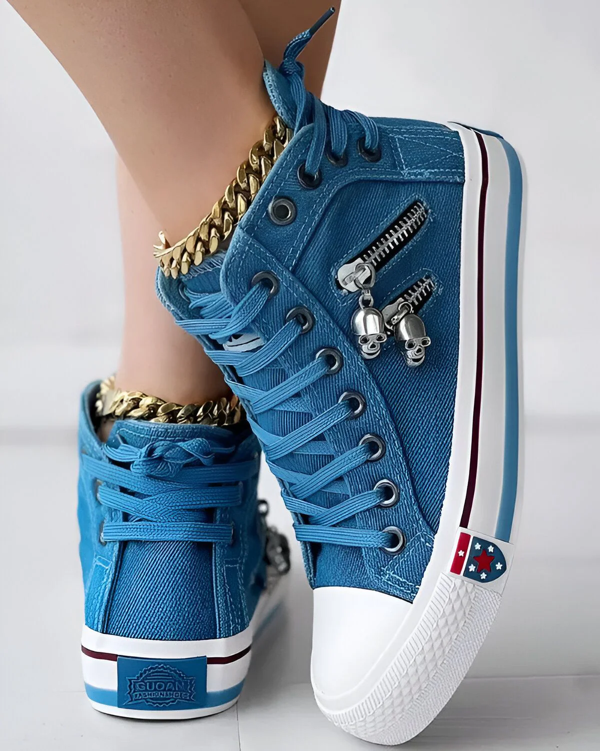 Plongez dans l’essence même du style décontracté avec nos Baskets décontractées à lacets avec fermeture éclair squelette. Elles incarnent l’harmonie parfaite entre mode et confort, vous offrant une expérience de port incomparable. Conçues pour vos moments de détente et d’exploration, ces chaussures s’imposent comme l’incarnation même du style décontracté.