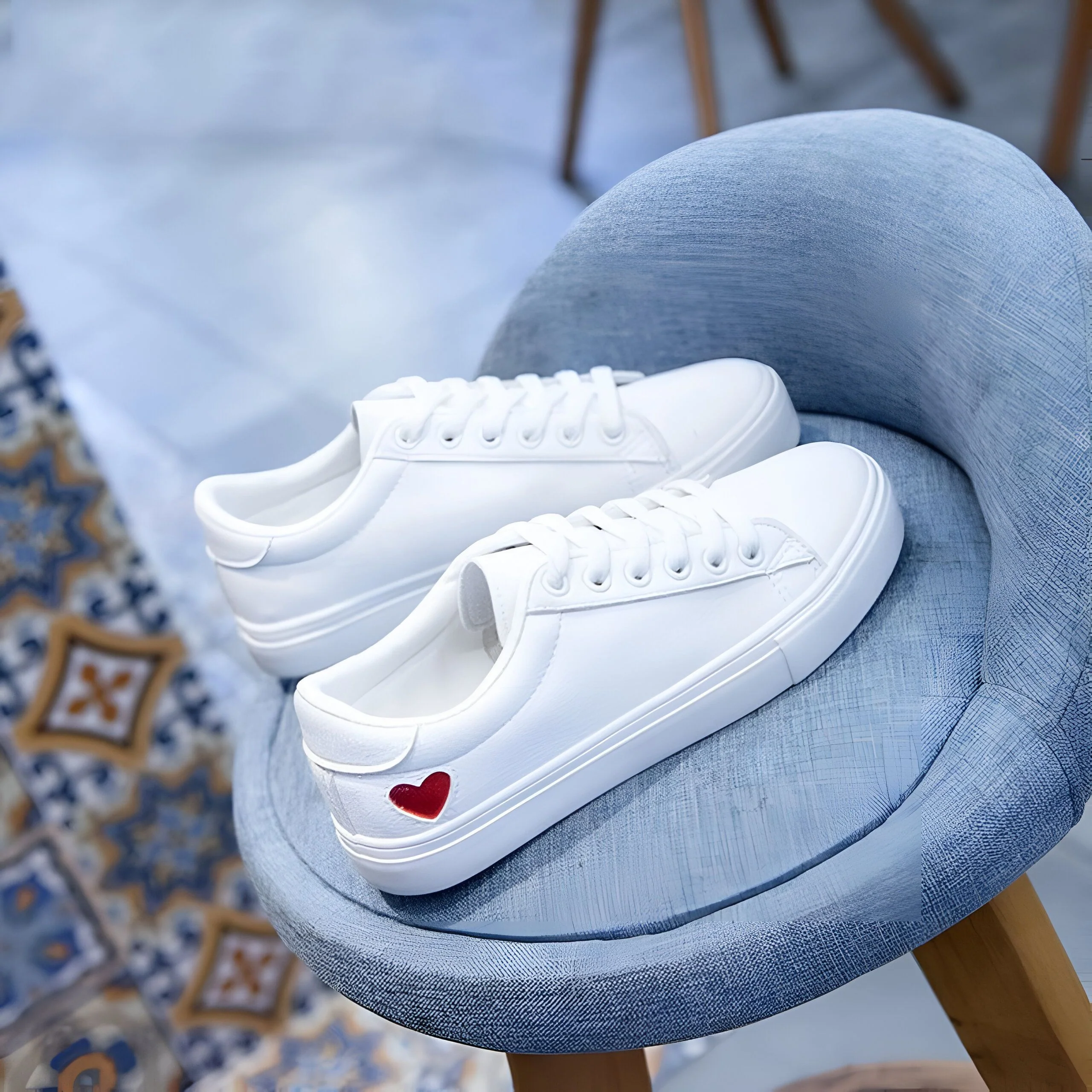 Baskets Femme Coeur Blanches : Des baskets blanches, style casual, ornées d’un discret cœur rouge, pour un look élégant et tendance. Un confort optimal grâce à une conception soignée et des matériaux de qualité. Parfait pour compléter toutes vos tenues.