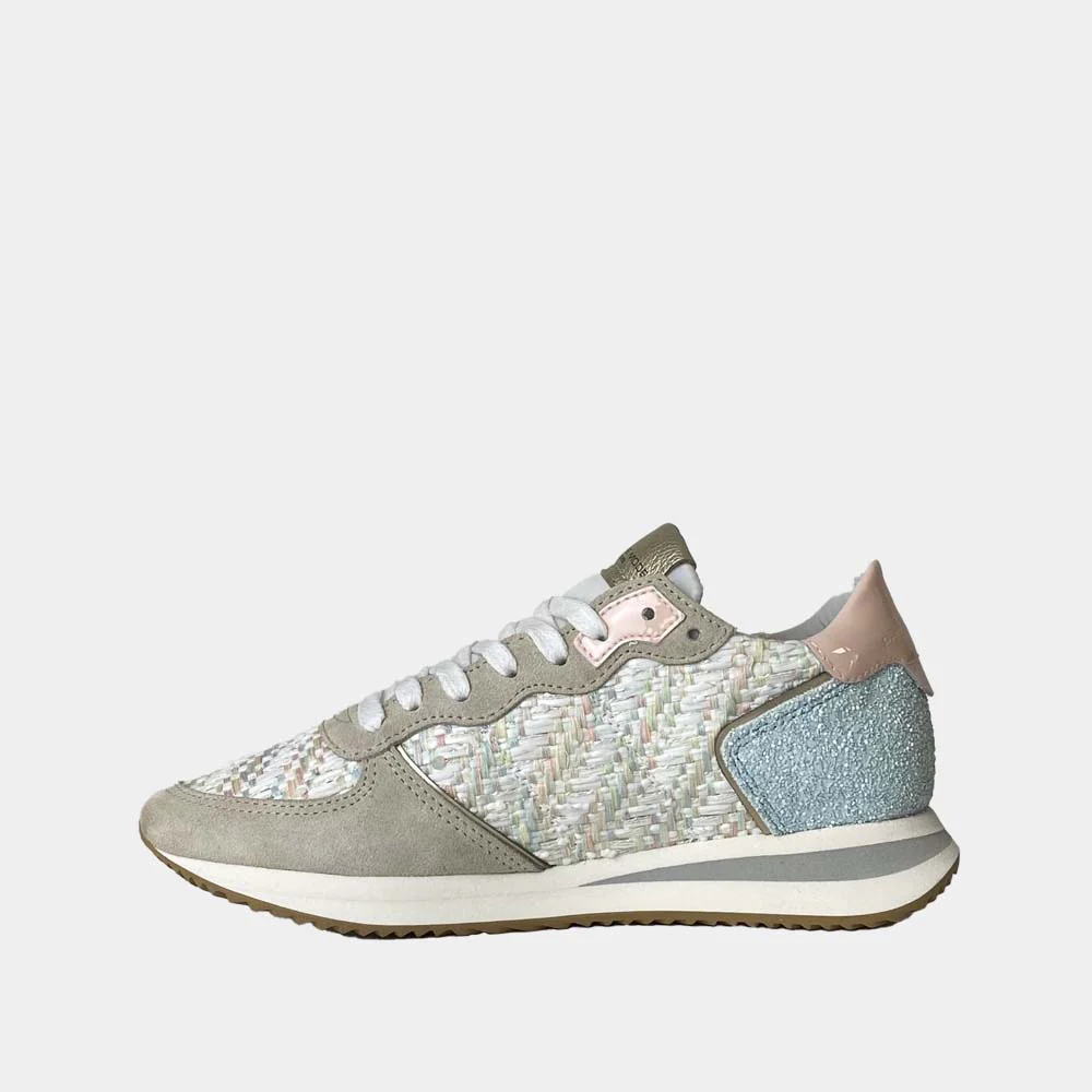 La marque au célèbre écusson marie look urbain, modernité et esprit raffiné. Laissez-vous tenter par les sneakers Philippe Model Pacific TZLD en raffia et velours beige/rose/bleu. Ce modèle est parfait pour un look décontracté et féminin. Découvrez toute la collection de chaussures Philippe Model sur Ann Tuil.