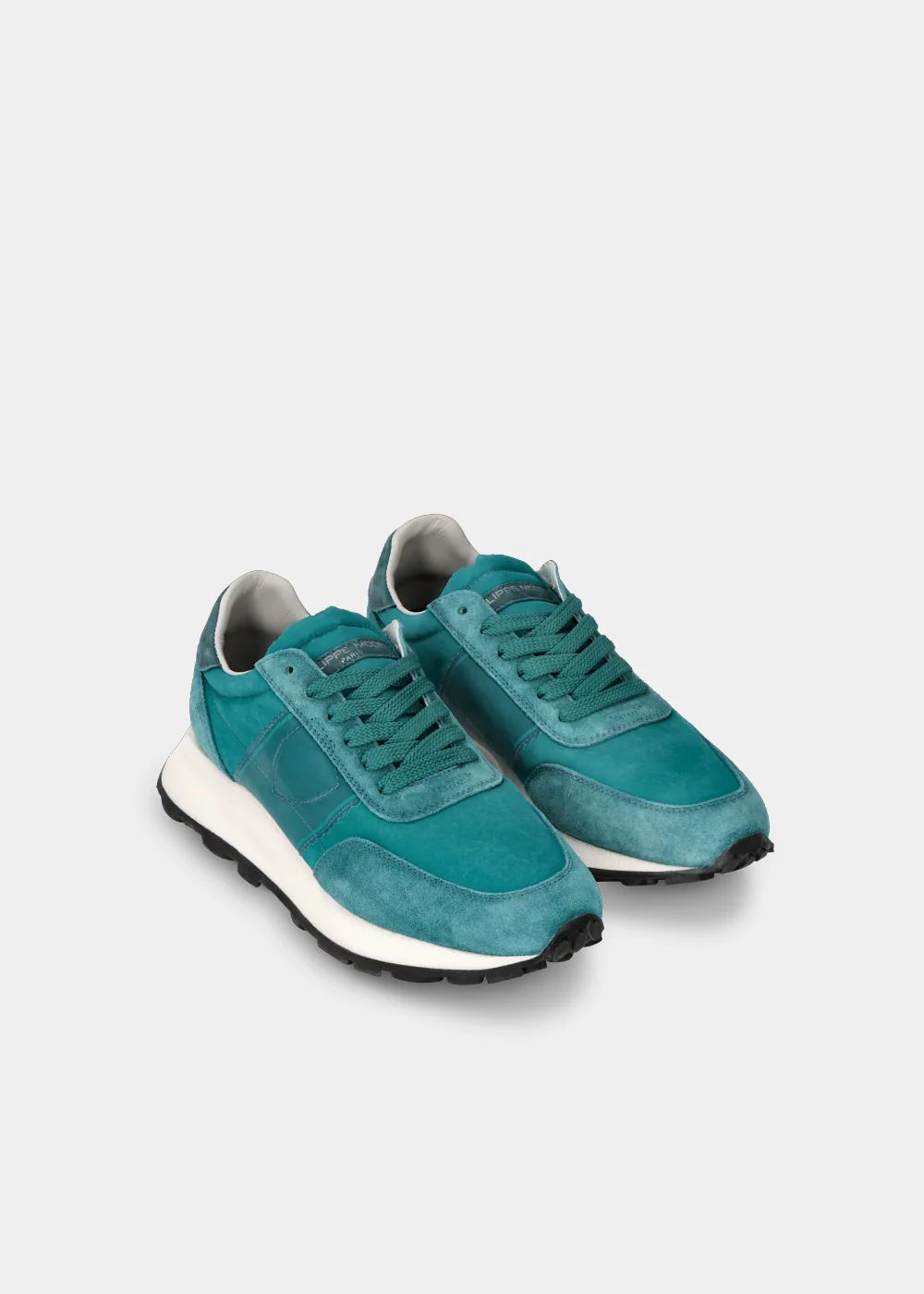 Grâce à leurs lignes inspirées des modèles running vintage les baskets Partiel proposent un nouveau concept de baskets chic dédiées à la ville. La tige en tissu technique bleu canard et suédine est complétée par des thermo soudures et des finitions en caoutchouc qui ajoutent une touche de dynamisme avec l’écusson galvanisé sur la bande latérale. La petite semelle rembourrée amovible et la semelle running ajustée en caoutchouc ultra-léger complètent le modèle en assurant un confort tout au long de la journée.