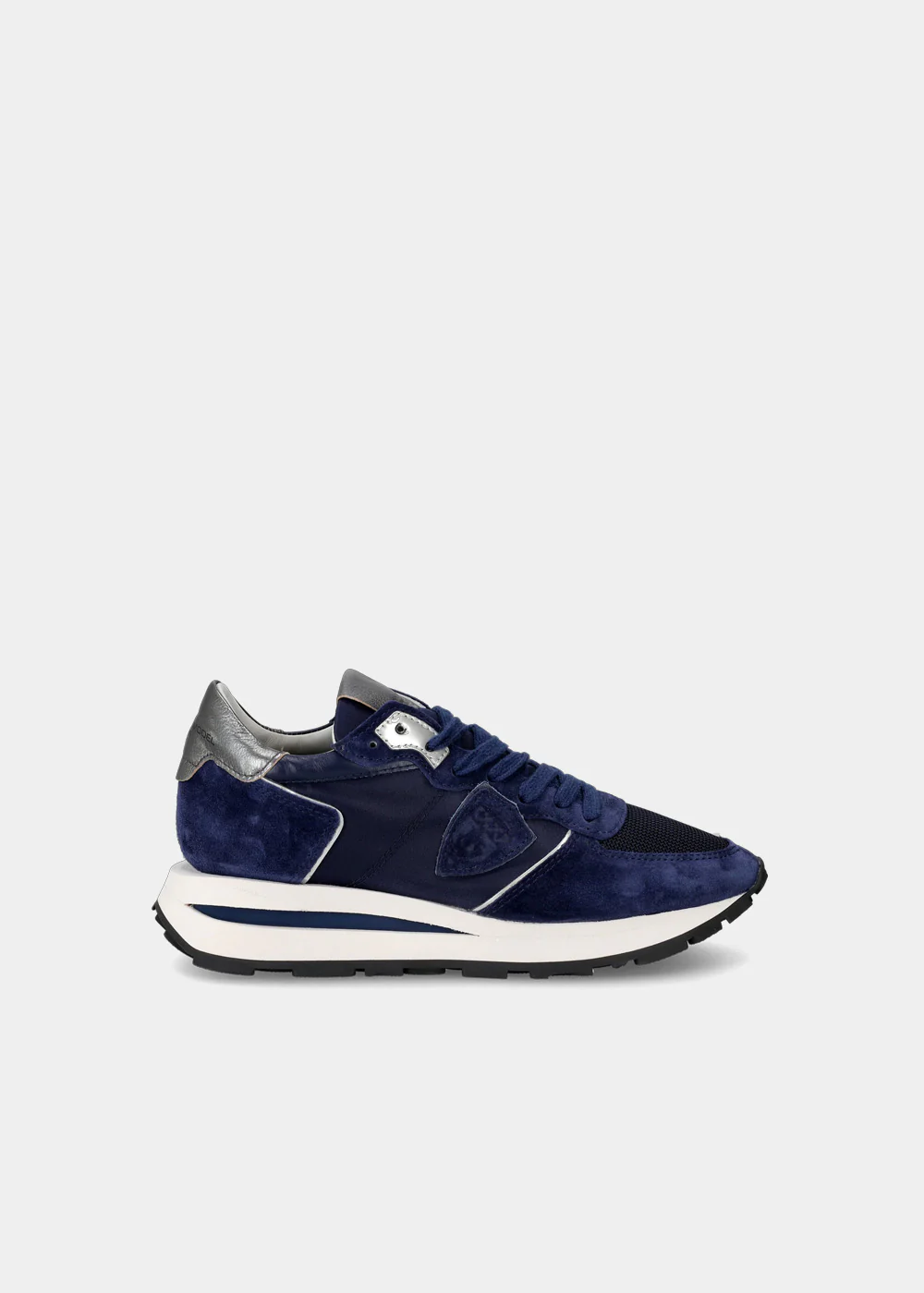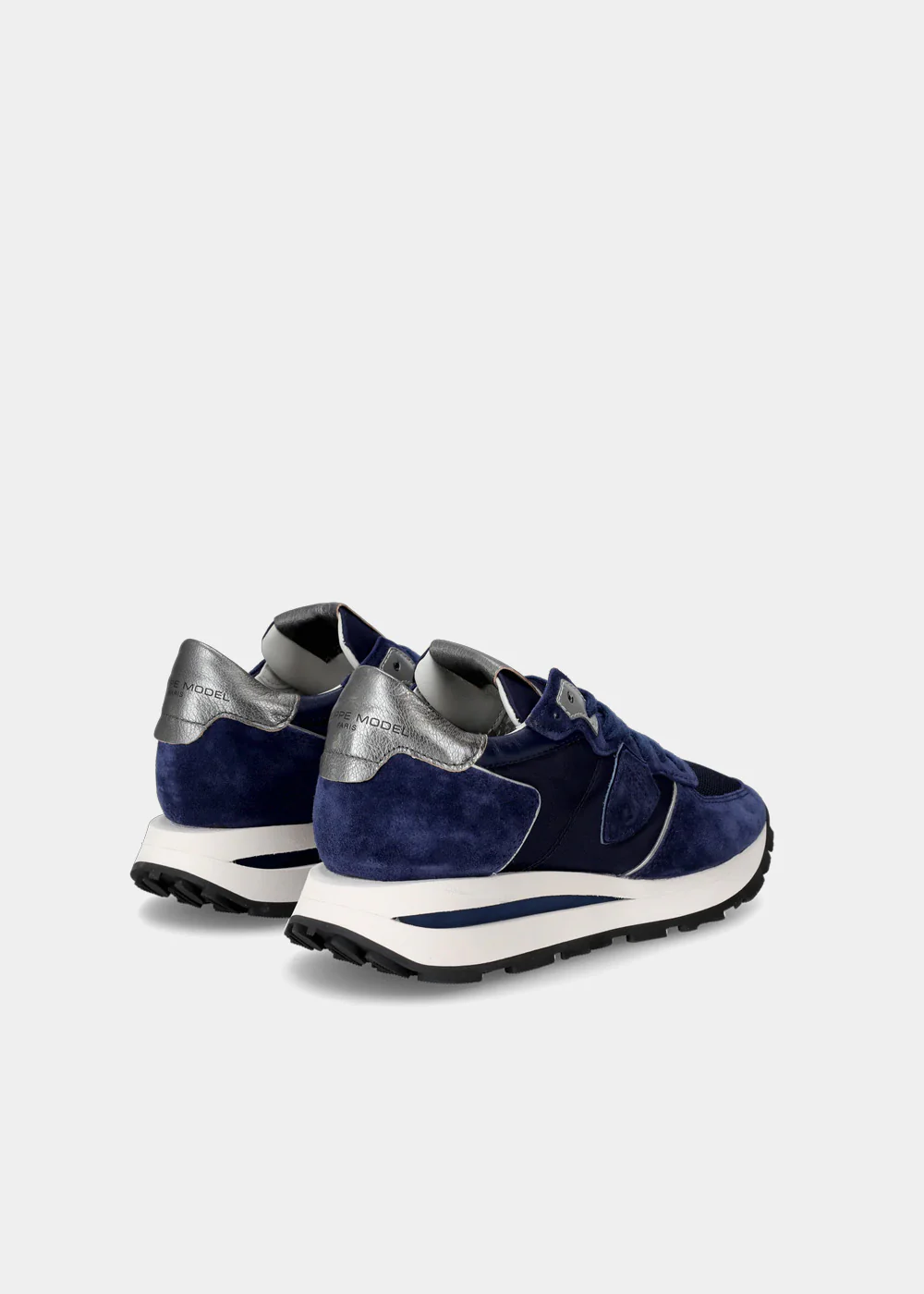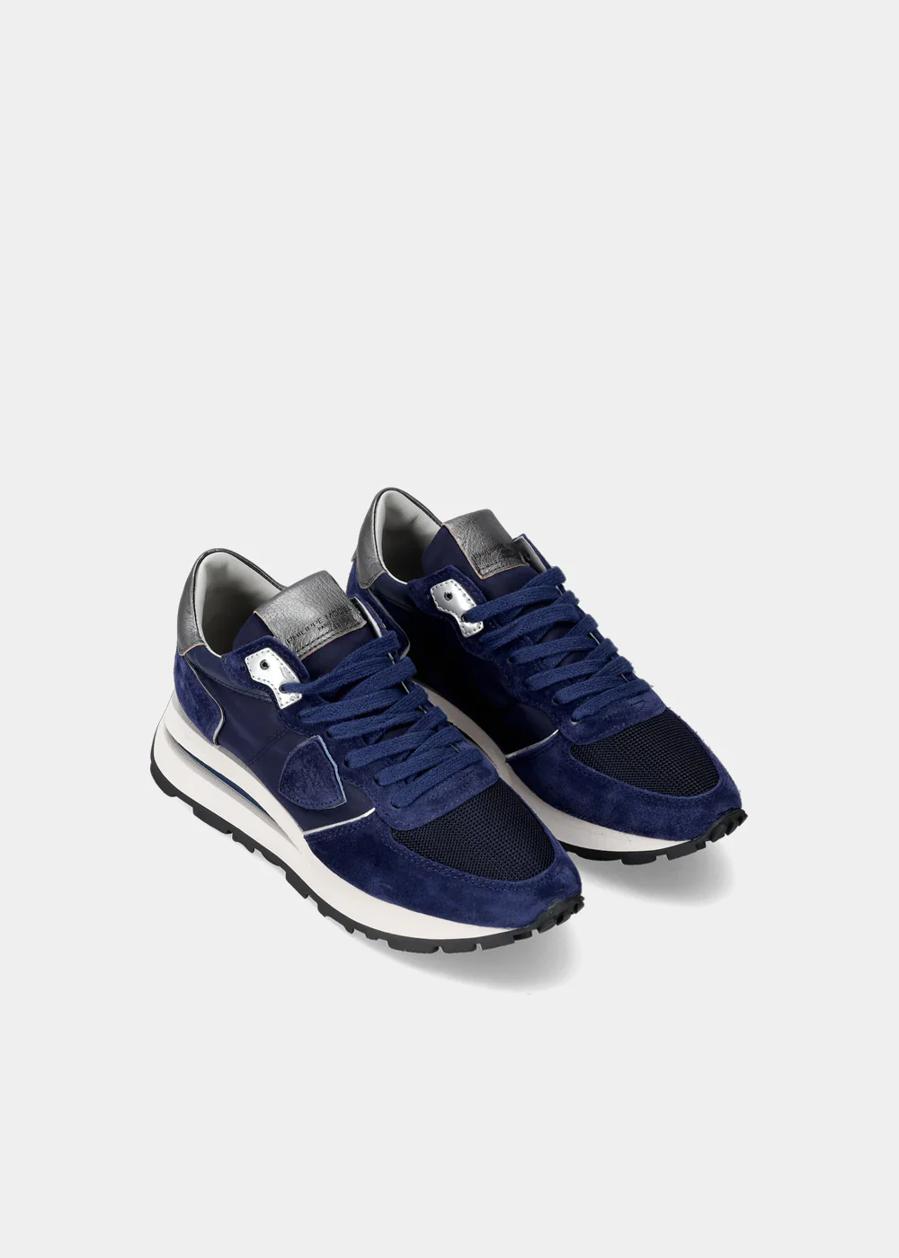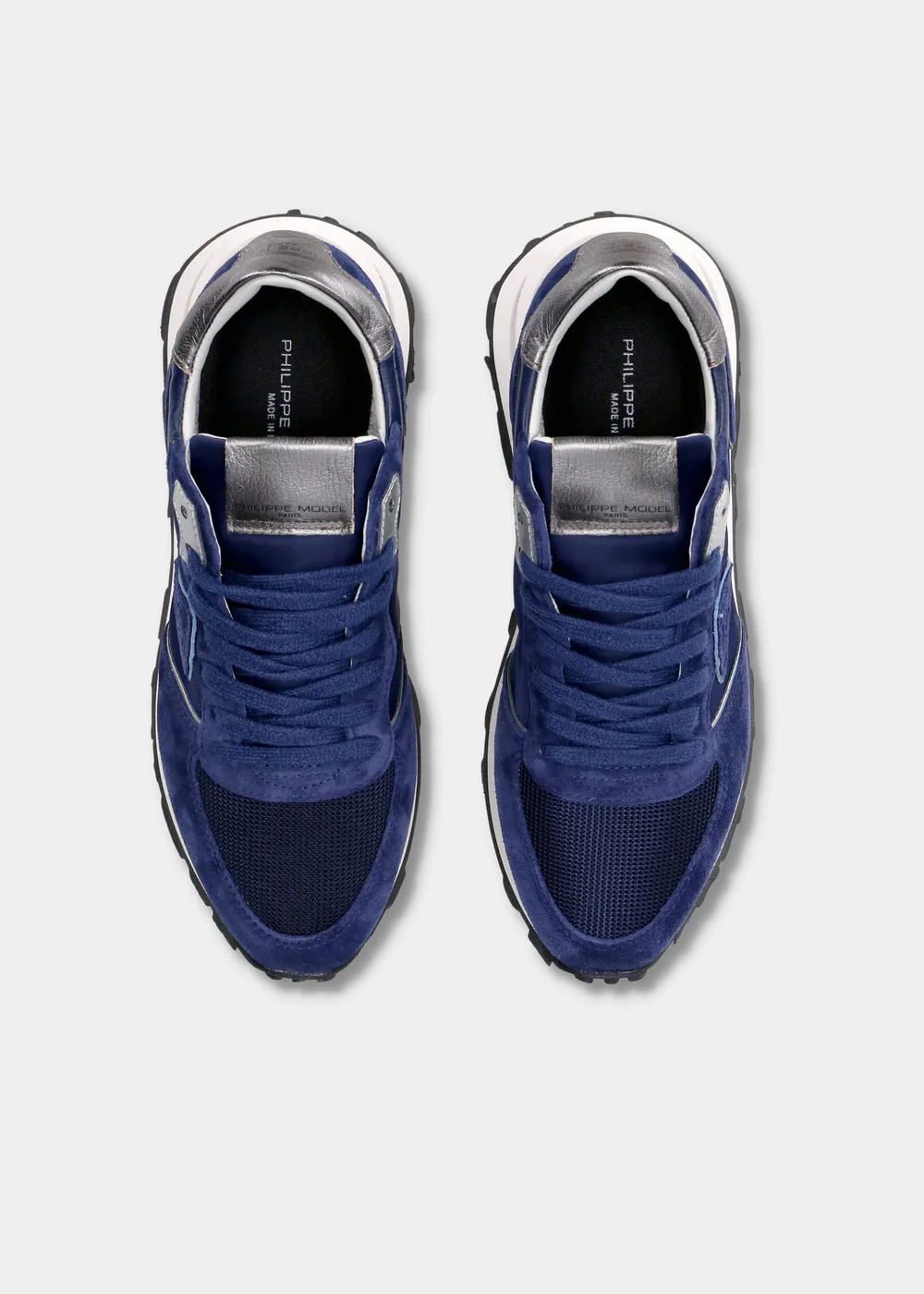 Cobalt ou outremer, le bleu est le ton le plus élégant à porter en ville. Associé aux notes argentées du col et des bords, il transforme la basket TKLD en une chaussure à porter en journée comme en soirée. Les formes évoquent les modèles vintage des années 70, revisitées avec des tissus techniques, du mesh et du suède dans une palette maritime. Le design est complété par une semelle audacieuse en caoutchouc ultra-léger avec une ligne saillante sur le talon et un empiècement contrasté fraisé artisanalement pour un effet tridimensionnel.