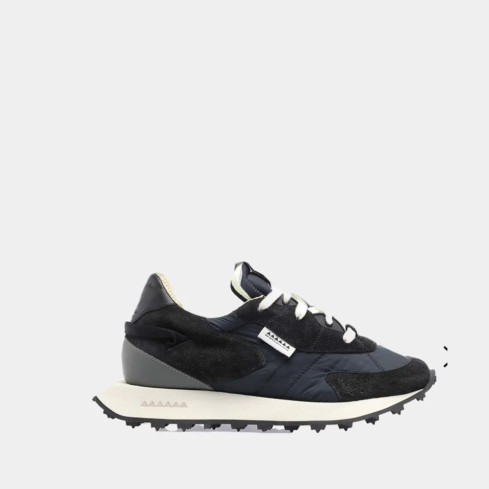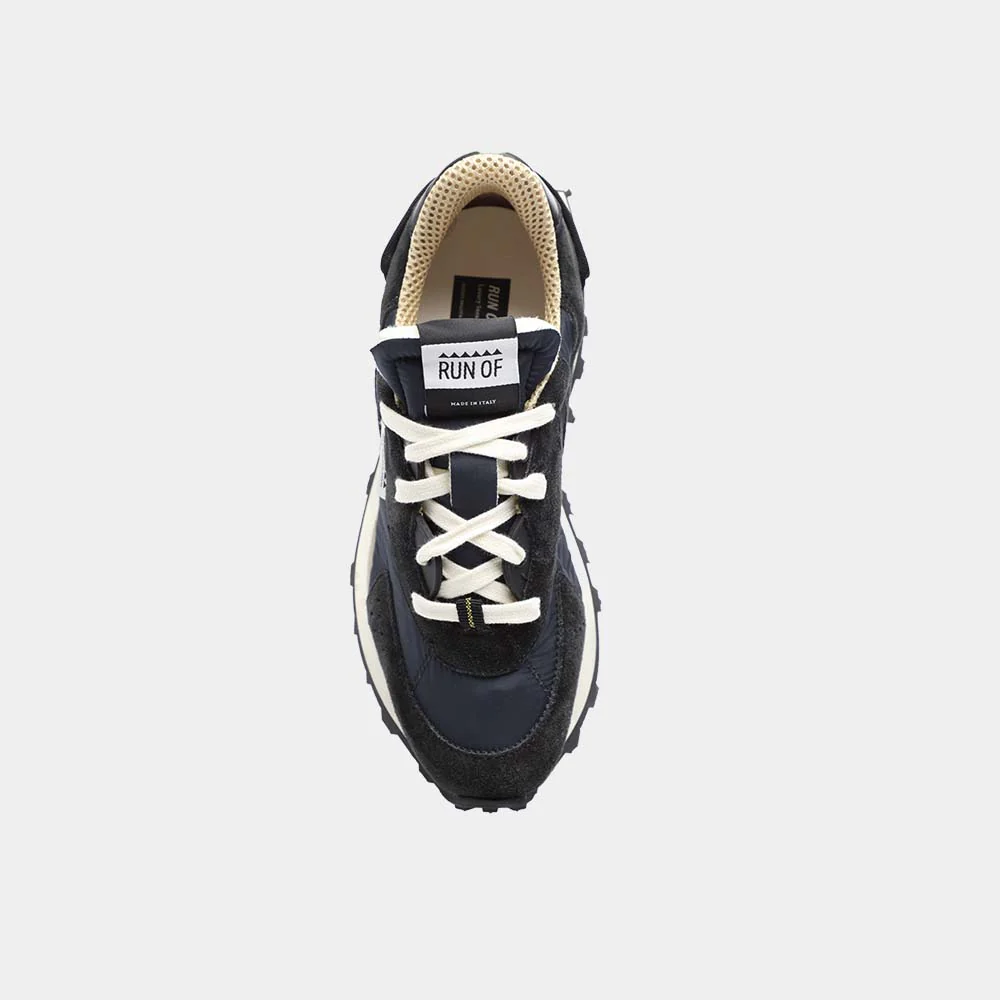 Run Of vous propose une collection de baskets pour femmes originale et créative fabriquée en Italie, comme ces sneakers Run Of modèle Kripto en nubuck nylon noir et marine. Découvrez toute la collection de chaussures Run Of sur Ann Tuil.