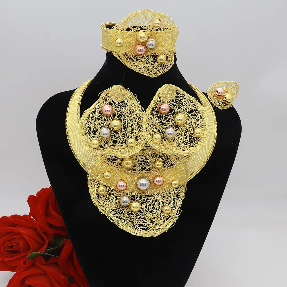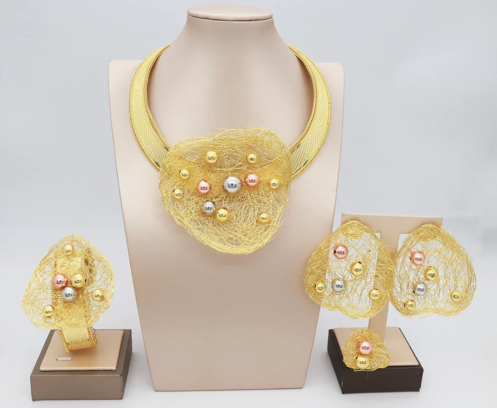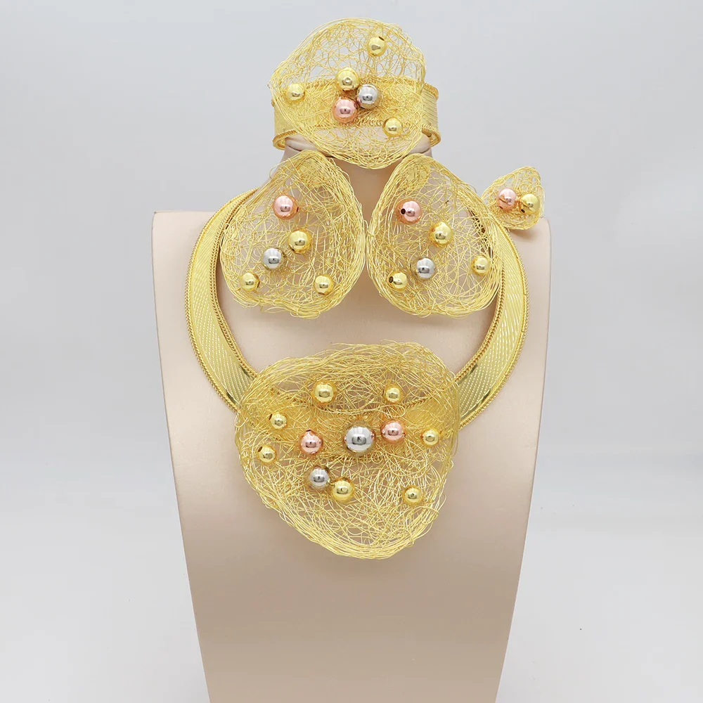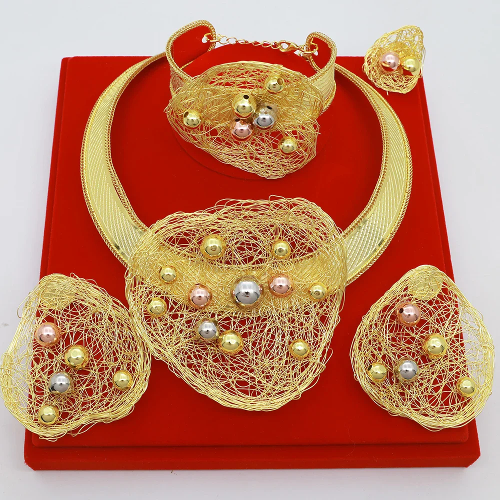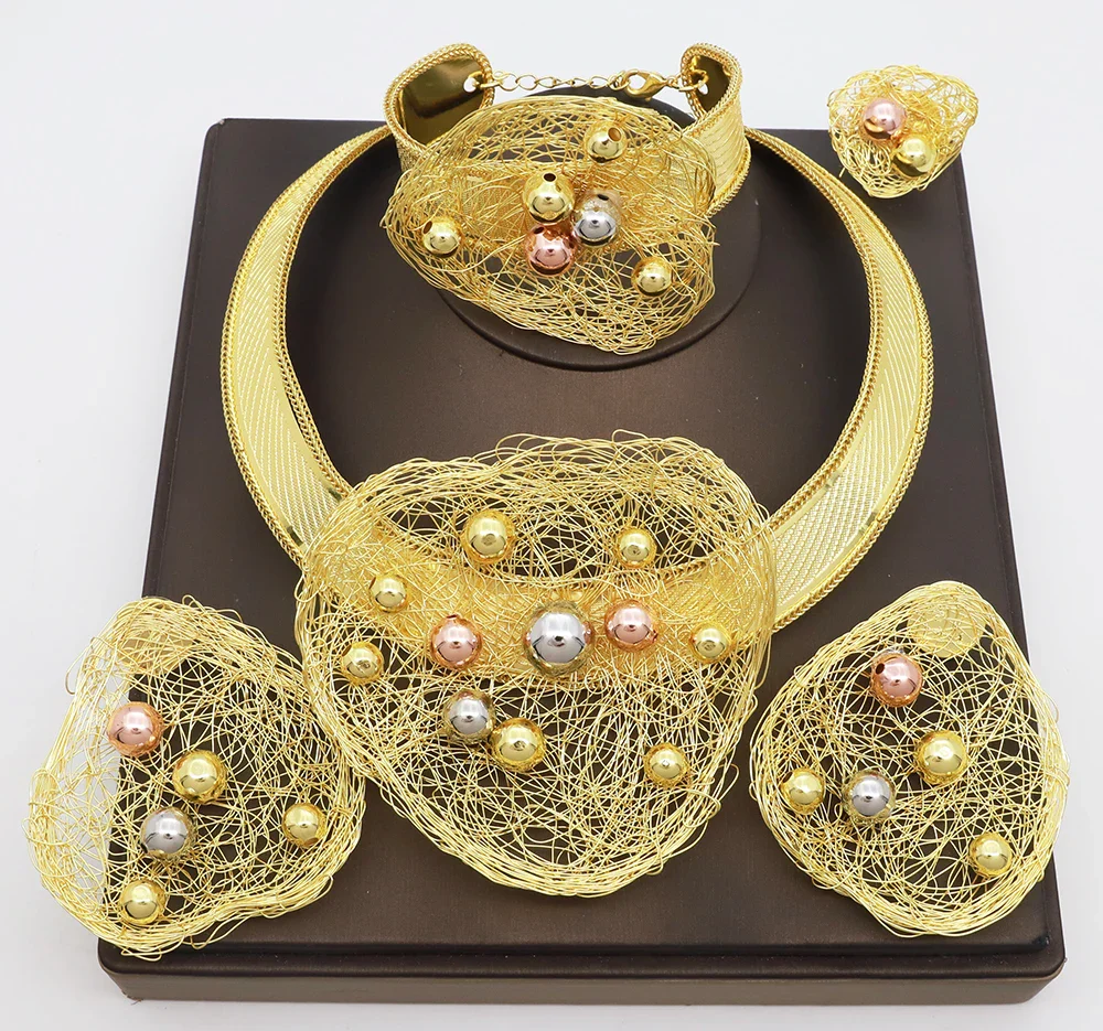 Bijoux en plaqué or italiens pour femmes, ensembles de bijoux faits à la main