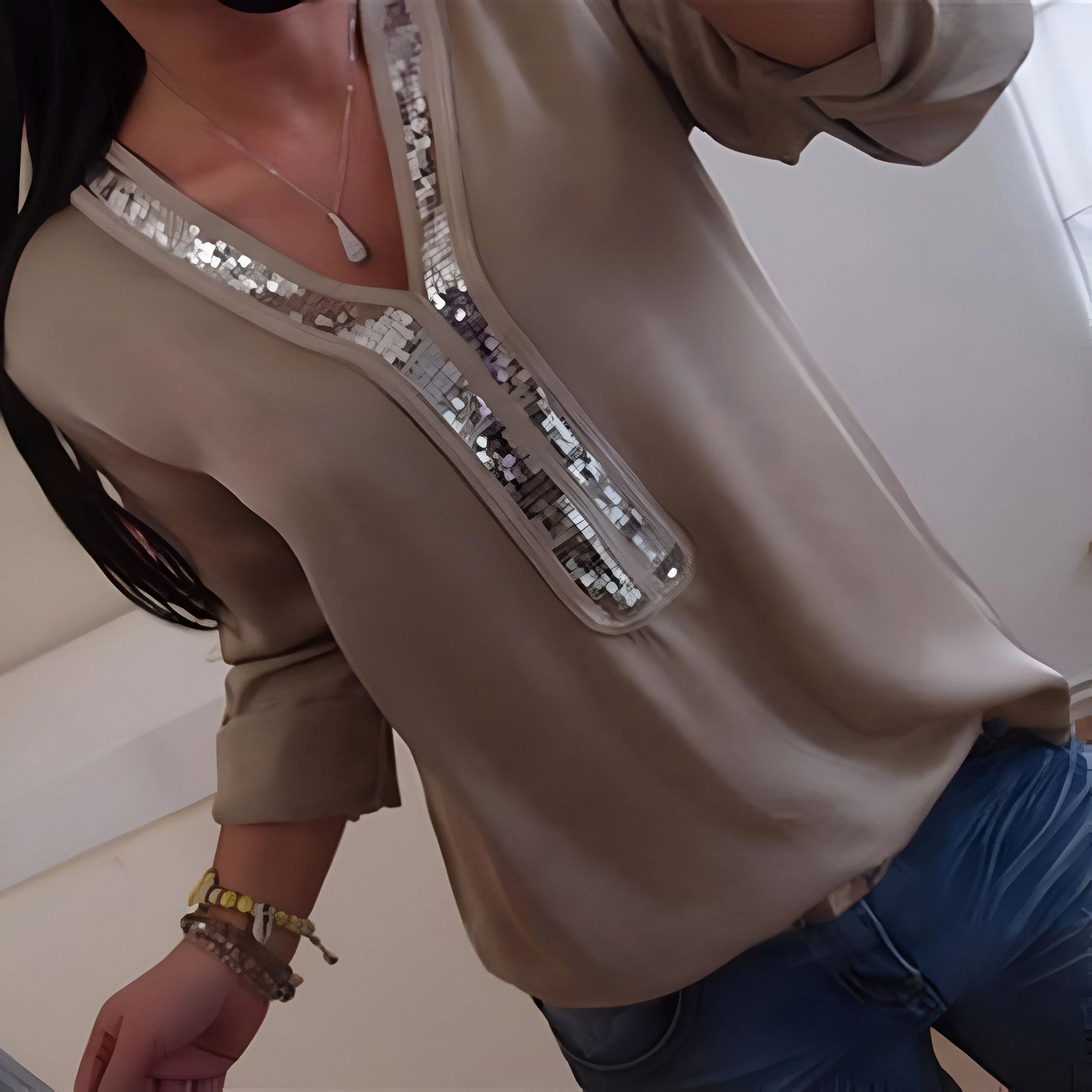 Sublimez votre allure avec cette Blouse Femme Élégante Sequins, une pièce raffinée en tissu doux, ornée de paillettes scintillantes, disponible uniquement en ligne. Un style unique pour un look moderne et féminin.
