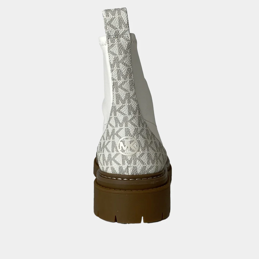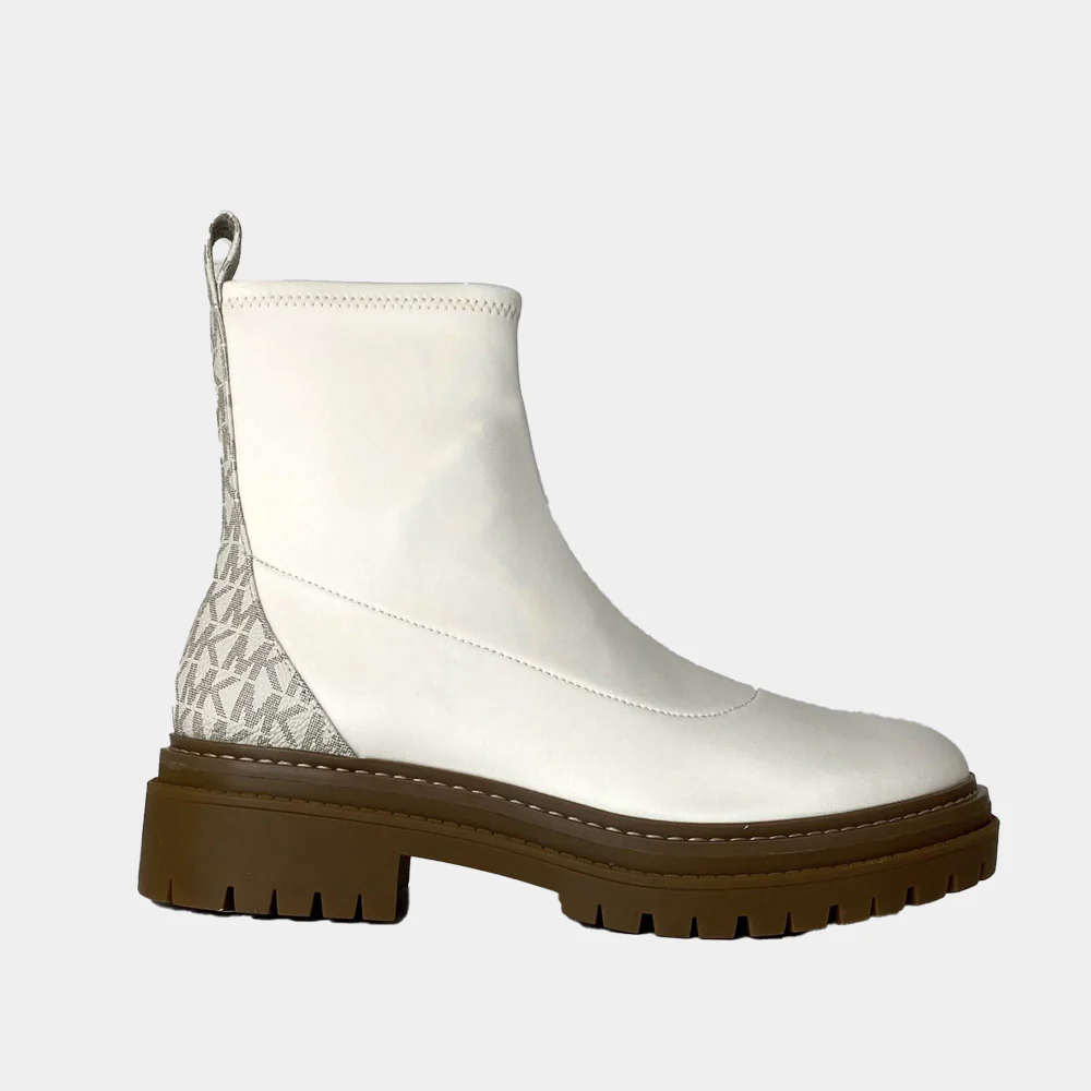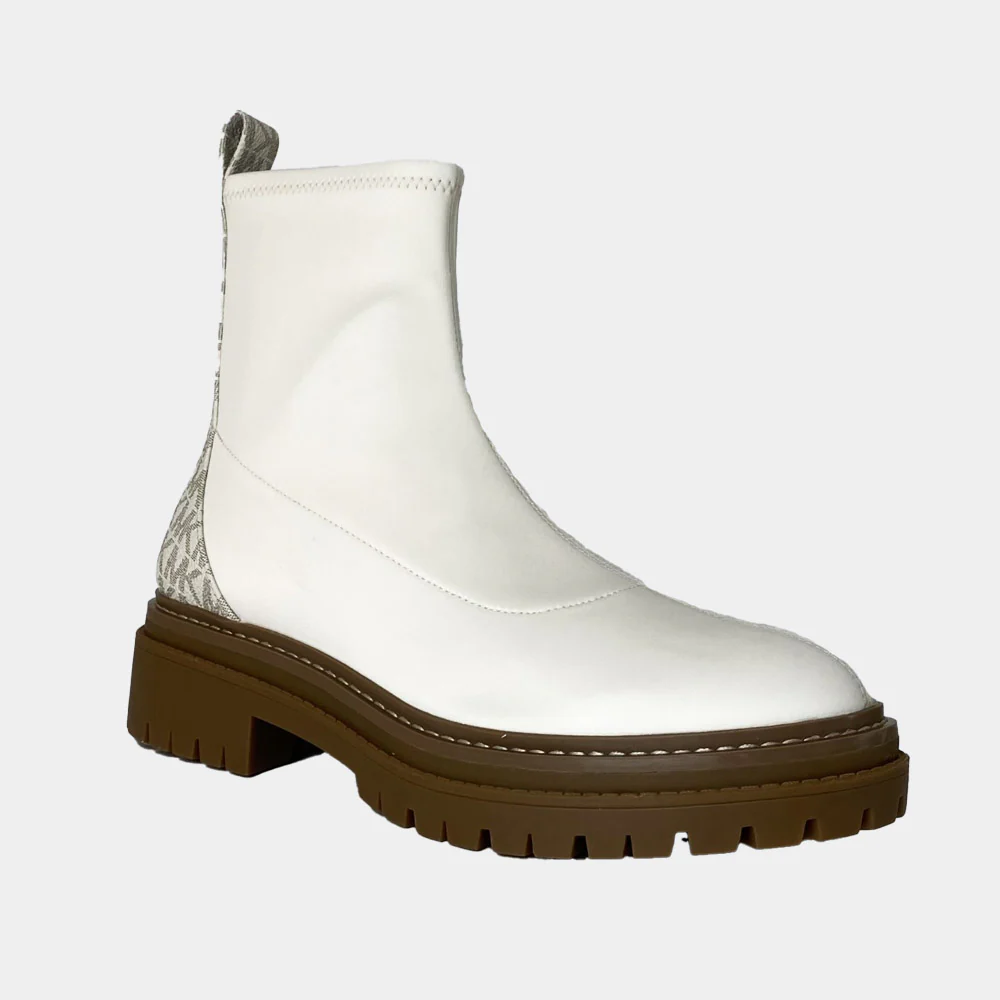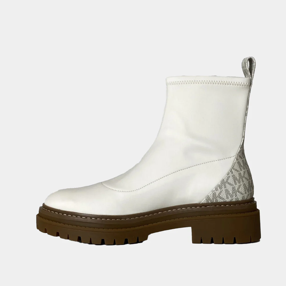 Craquez pour les boots Michael Kors modèle Comet Lug Bootie en tissu et cuir blanc/beige. Parfaites pour un look branché et coloré ! Découvrez toute la collection de chaussures Michael Kors sur Ann Tuil.