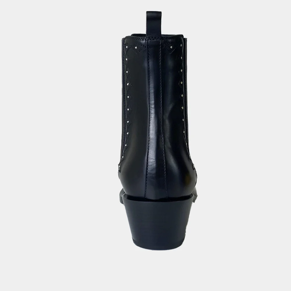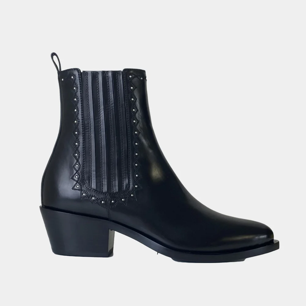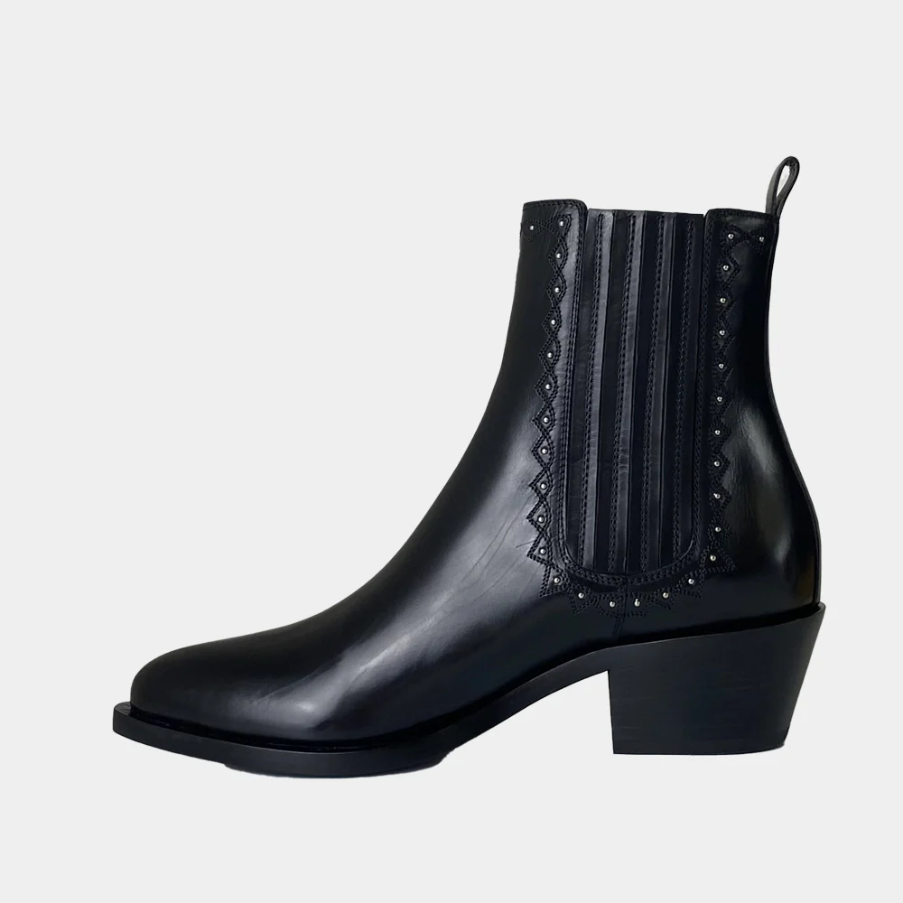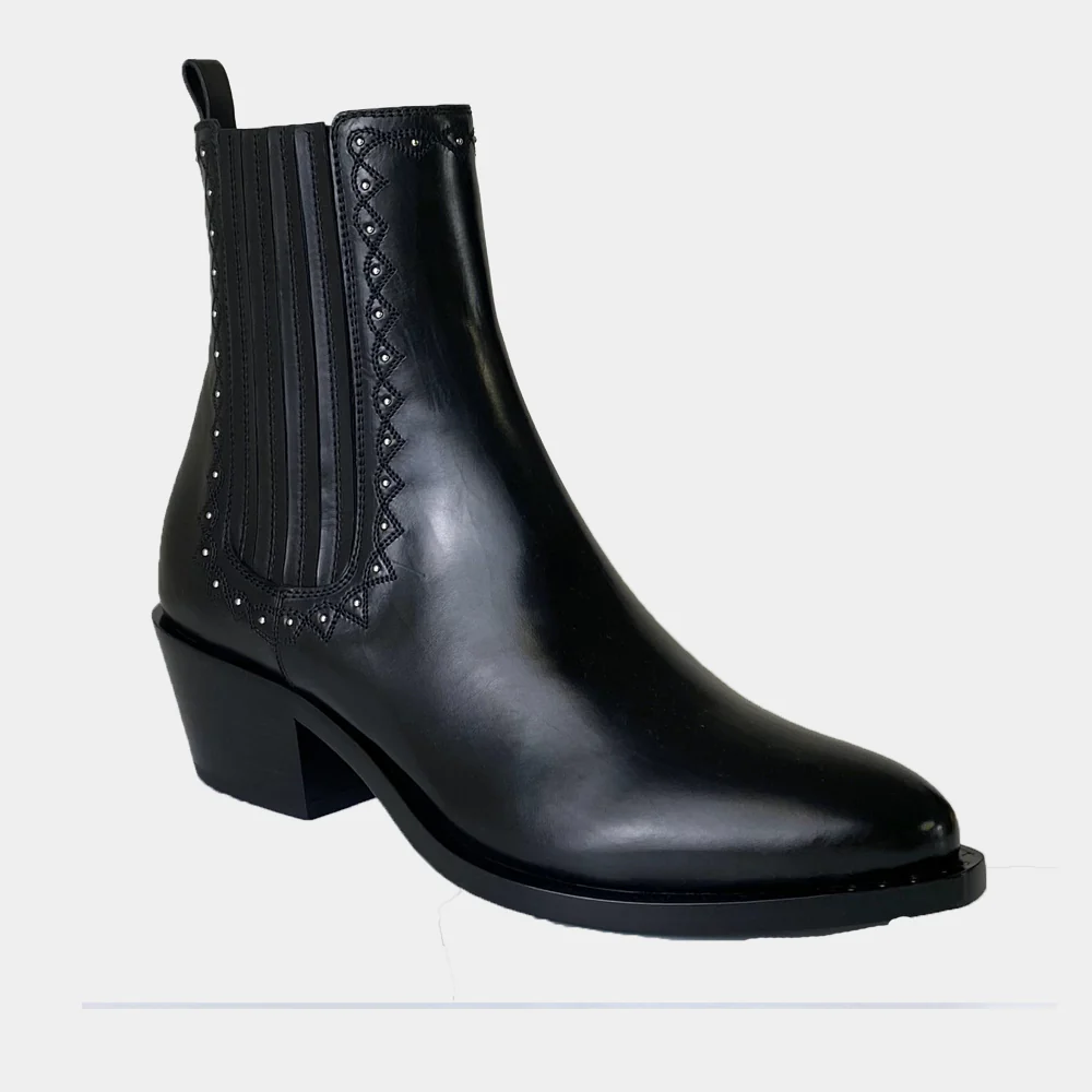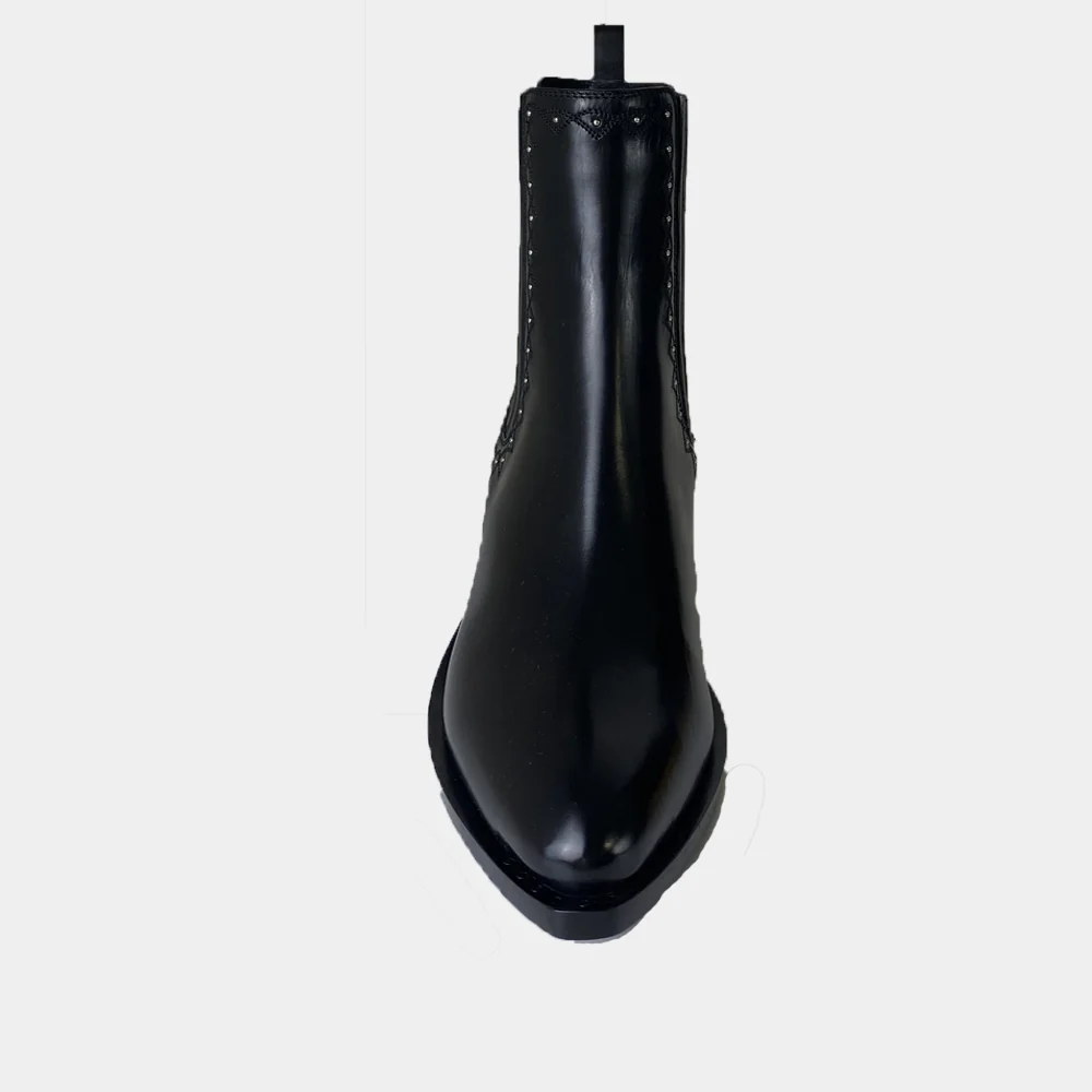 La marque de chaussures de luxe Sartore vous propose des santiags fabriqués de façon artisanale, comme ces boots du modèle SR4418 en cuir noir. Découvrez toute la collection de chaussures Sartore sur Ann Tuil.