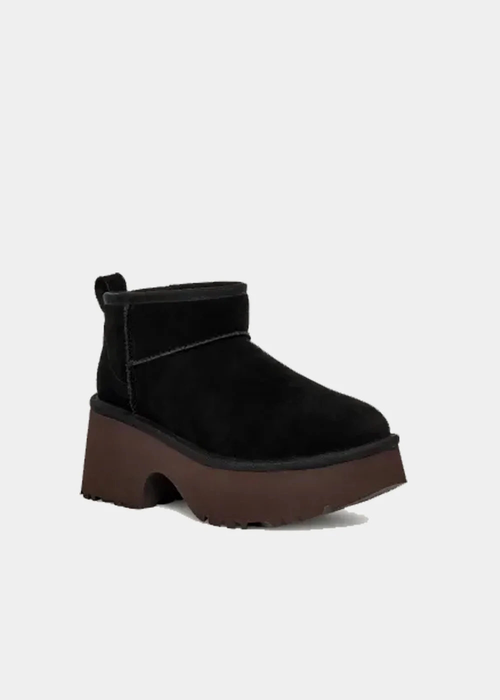 Prenez de la hauteur avec la Classic Ultra Mini New Heights. Dotée d’une tige en daim, d’une doublure UGGplush™ et d’une tige raccourcie audacieuse, cette Classic Ultra Mini se dévoile dans une nouvelle version de caractère grâce à une plateforme épaisse crantée et un talon de 7 cm.